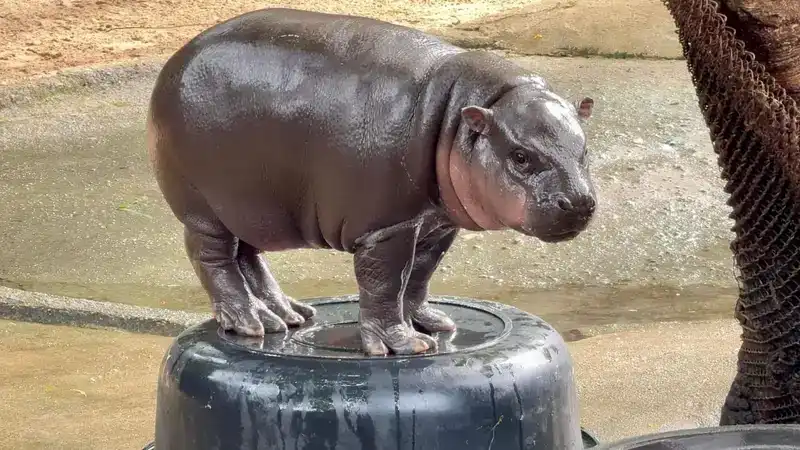Baby pygmy hippos look like shiny, dark plush toys with their rounded bodies, tiny ears, and perpetually smiling faces. These rare animals from West African forests are much smaller than their common cousins, weighing around 400-600 pounds as adults. Their glossy skin and compact proportions amplify their toy-like appearance.