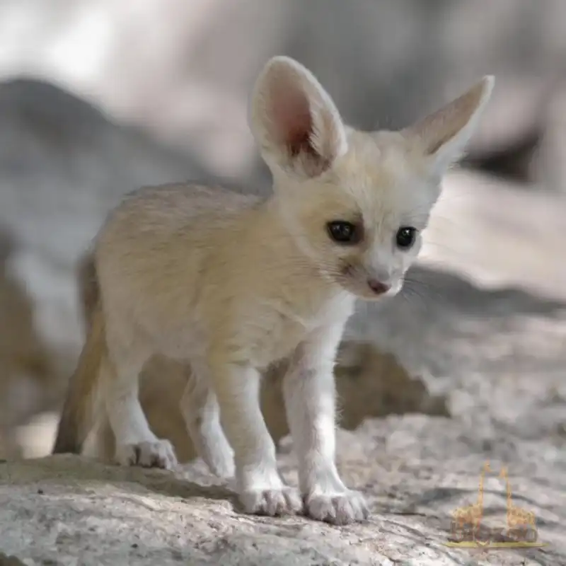 Thick fur on their feet protects them from burning desert sand, while their cream-colored coat reflects sunlight.